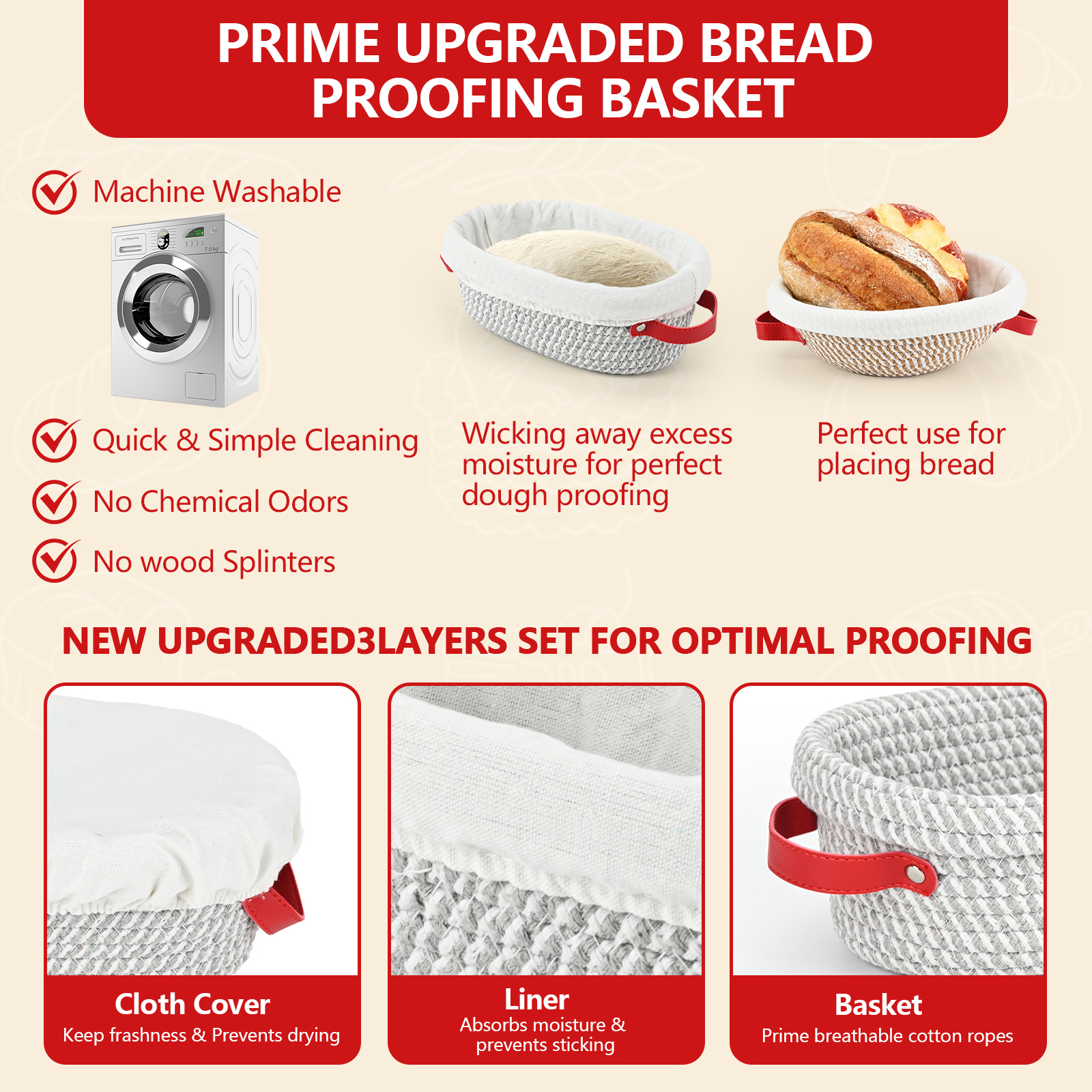 • Breathable Bread Proofing Baskets: Our proofing baskets(9″ round & 10″ oval) are crafted from high-quality cotton which allow airflow to wick away excess moisture, and each cotton banneton proofing basket comes with thick breathable cover and liner to keep your dough fresh and well-aerated. Both bread baskets and cover & liner are machine washable, offer much convenient for you