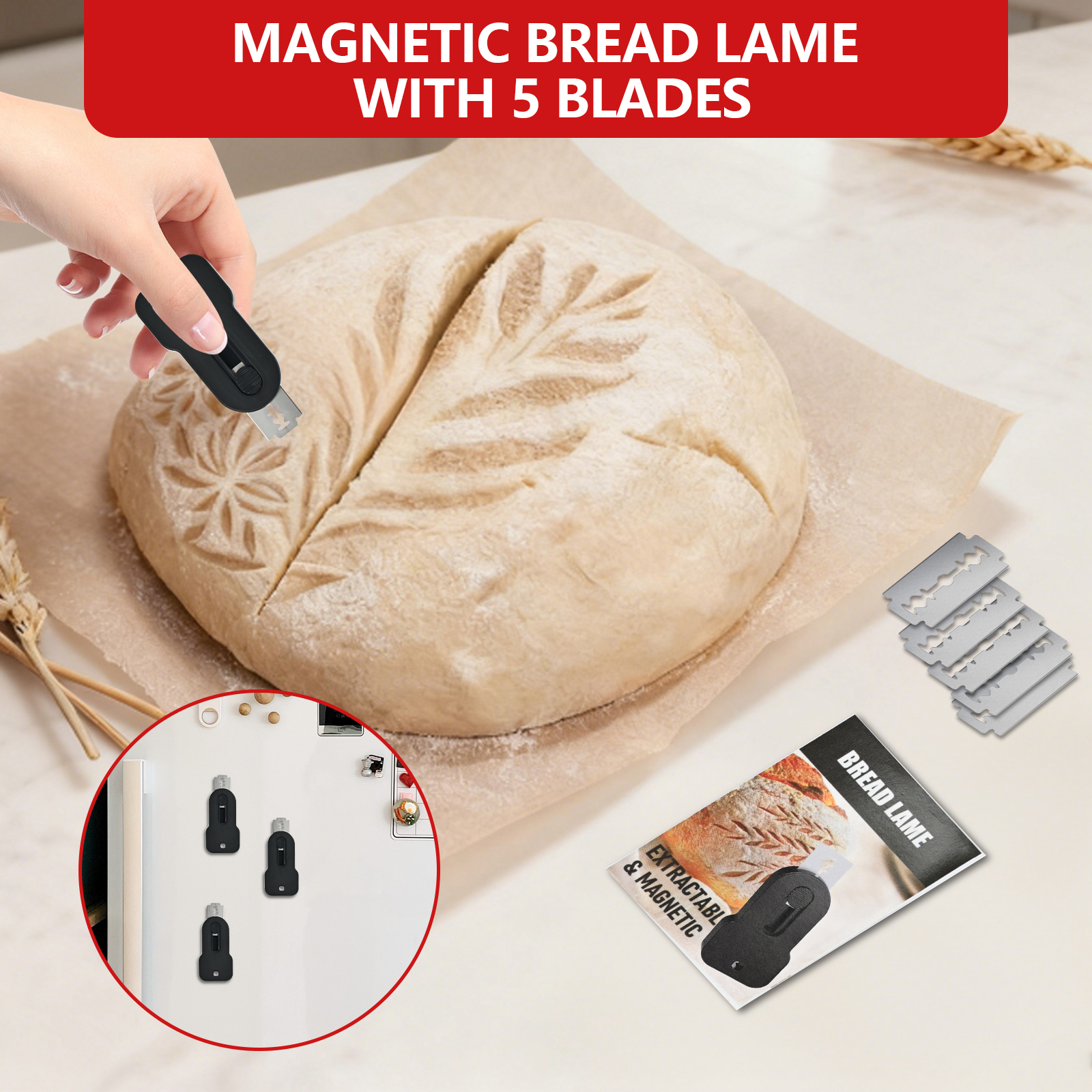 • Magnetic Bread Lame & Reusable Bread Storage Bag: Achieve stunning bloom on your sourdough with our stainless steel bread lame. The magnetic back securely holds it on fridge, also included 5 extra blades ensure long-term use. Our bread bag lined design to maintain crustiness while preventing moisture buildup, preserve your baked sourdough bread fresh. Reusable bread bag is an eco-friendly alternative to plastic wrap, ideal for zero-waste kitchens